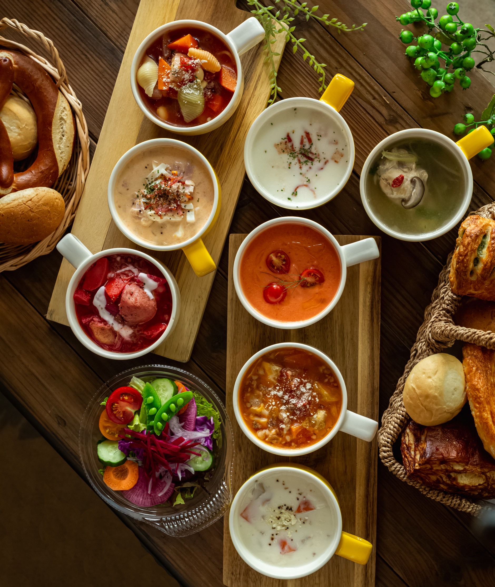 平日ハーフビュッフェはメイン料理1品にサラバ―とスープバーが付きます。