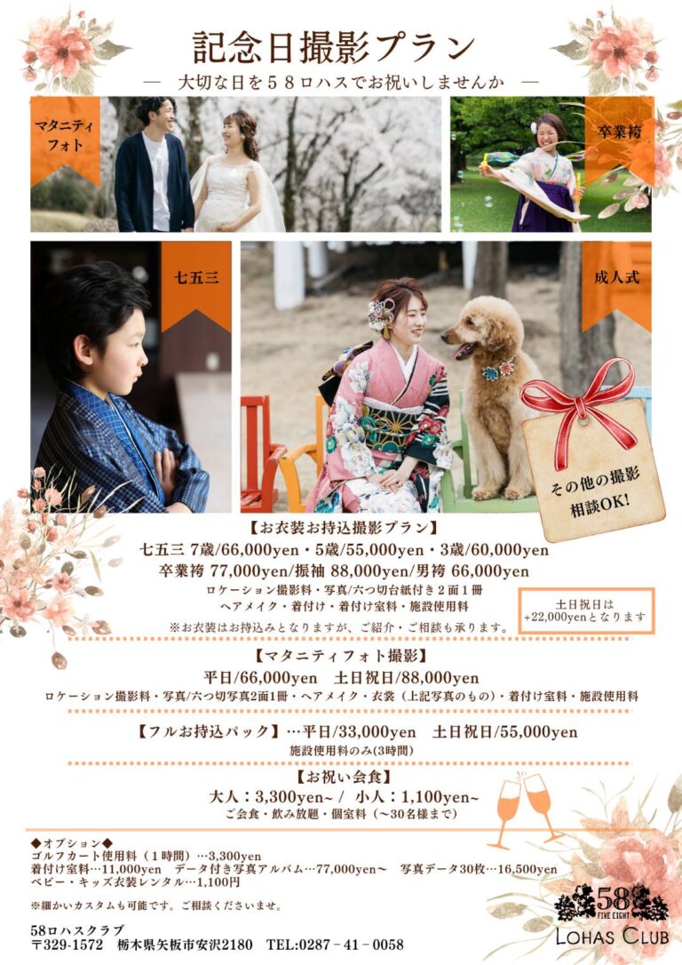 卒業式、成人式、七五三など大切な記念日を58ロハスで残す!