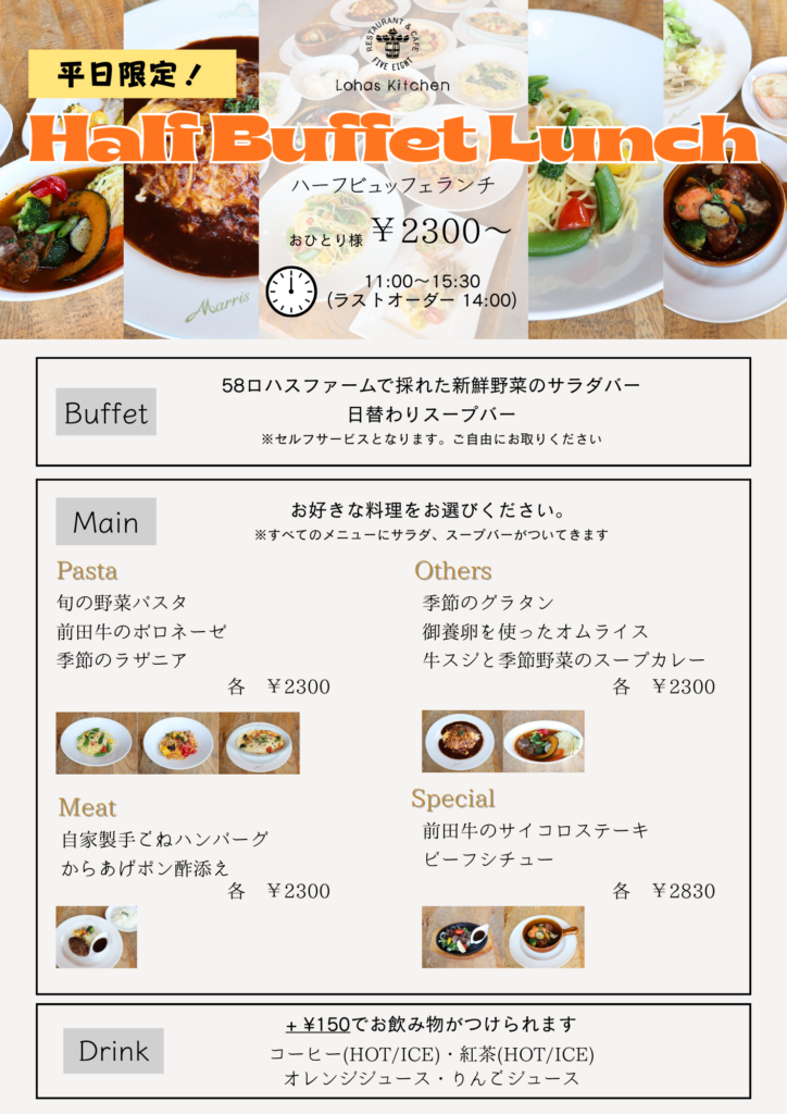 誠に勝手ながら、2026年3月2日(月)以降の平日は、 ハーフビュッフェでの営業とさせて頂きます。