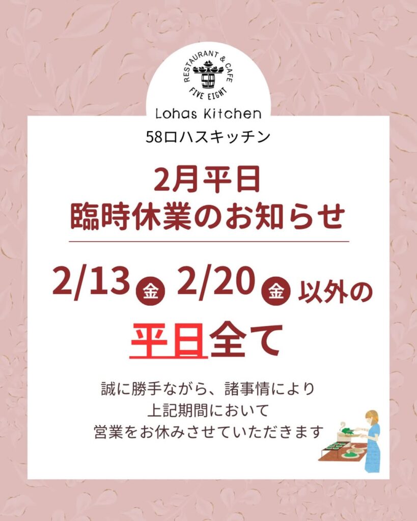 平素より58ロハスキッチンをご利用いただき、誠にありがとうございます。